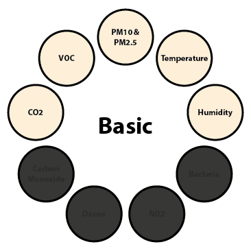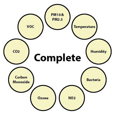 All aspects of the Basic level plus airborne bacteria and NO2 measurements